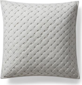 A lattice motif lends inviting texture to a pure-cotton throw pillow fashioned with mitered corners to bring luxe sophistication to your bedroom ensemble.