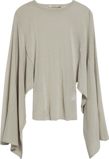 Paloma Wool's spring '26 collection is a sheer dream with pieces like this merino-wool-kissed top that is fitted through the arms and body with draped panels at the sides that give it flowy dimension.