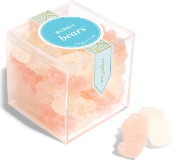Delight friends and family alike with this set of effervescent, grownup gummies infused with the flavors of French champagne. This smartly dressed treat is displayed in a reusable, magnetic-closure Lucite® Candy Cube.