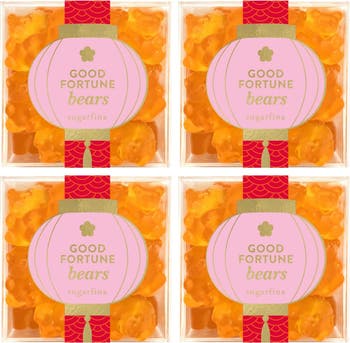 Ring in the Lunar New Year and share the good fortune with this set of elegant candy cubes filled with mango-, orange- and passionfruit-flavored gummy bears to welcome prosperity and joy.