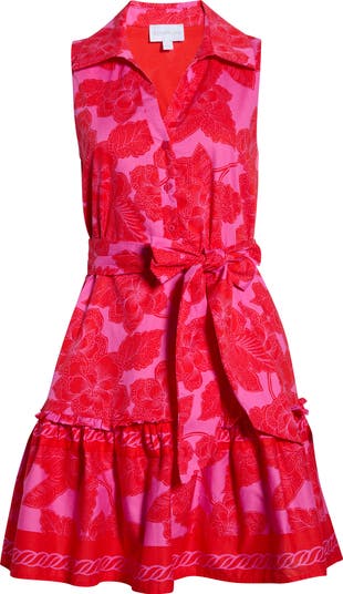 Made of crisp cotton, this breathable, vibrantly printed shirtdress features a sleeveless silhouette and a matching belt cinching the waist.