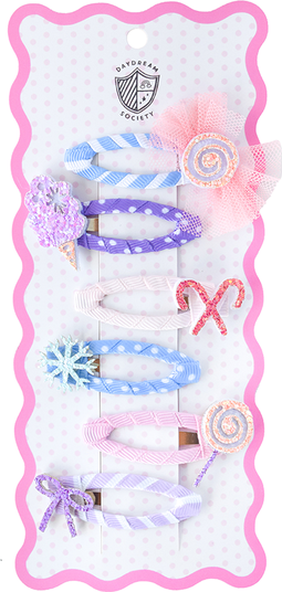 Bring the magic of the Land of Sweets to your holiday hairstyle! This charming clip set features sparkling details and festive colors, perfect for pirouetting through parties or adding a little twinkle to everyday looks.