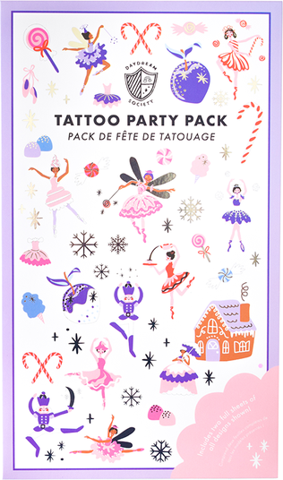 Visions of sugarplums are dancing — and your holiday party just got a whole lot sweeter! The Sugarplum Collection is bursting with candy-colored charm, whimsical details, and a touch of ballet-inspired magic. Sprinkle in some temporary holiday fun with this Tattoo Party Pack: perfect for stockings, party favors, or dance recitals.