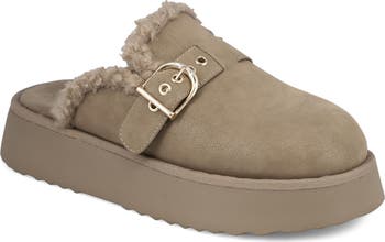 Keep your look chic and cozy with this laid-back platform mule fashioned with soft faux-shearling lining.