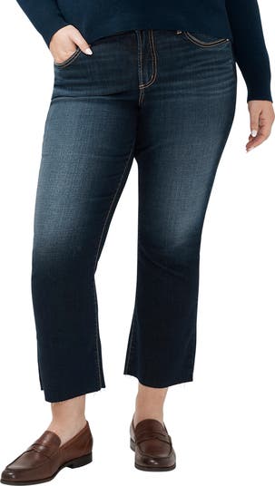 Designed to enhance an hourglass shape, these kick-flare jeans are made with raw hems, faded stretch denim and a contoured waist that easily prevents gapping.