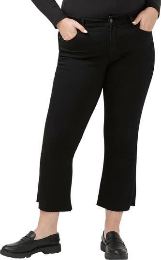Designed to enhance an hourglass shape, these kick-flare jeans are made with raw hems, stretchy denim and a contoured waistband that easily prevents gapping.