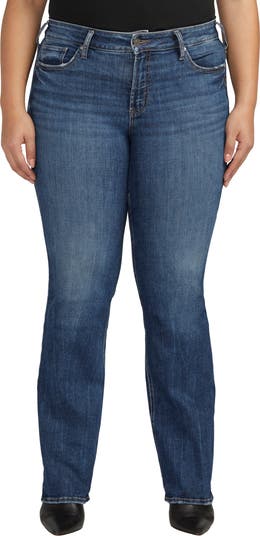 Designed to enhance a curvy figure, these full-length bootcut jeans feature a gap-free contoured waistband and added ease in the hip and thigh.