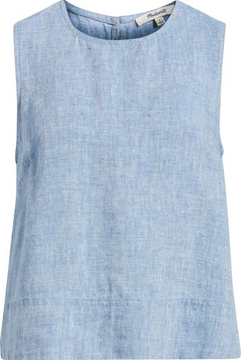 Elevate your wardrobe with this timeless shell top. Made from 100% linen, it features a keyhole button closure and swingy hem.
