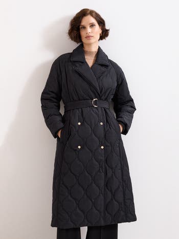 Practical yet stylish, make this longline puffer coat your everyday staple. Showerproof, with a quilt pattern designed to elevate, this coat features a belt to cinch in the silhouette and expertly placed poppers to create a contemporary wrap effect. It’s the perfect addition to your wardrobe this season.