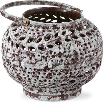 Sula Hand Pierced Round Lantern Candle Holder Patina Iron