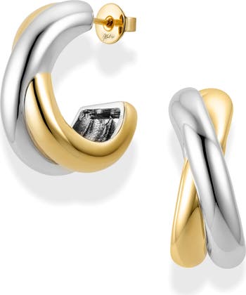 Crisscross hoops shine in two tones on these trend-right earrings that easily go from work to weekend.