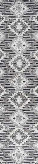 Sumak High-Low Pile Neutral Diamond Kilim Indoor/Outdoor Area Rug