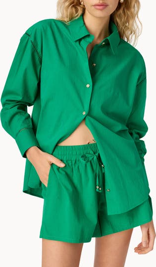 Oversized and relaxed, this cotton-poplin button-up shirt is made with ladder-stitch insets.