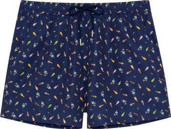 The SUMMER beach boxer is a swim boxer with a loose, straight, medium-length thigh-high cut. Thanks to this comfortable design, you can adopt a chic casual look and feel comfortable in any situation. Support is provided by a mesh brief lining and a drawstring waist with branded metal ends. Practical and functional, the beach boxer shorts have two side pockets and a back welt pocket with Velcro fastening. These beach boxer shorts are made from high-quality polyester. This fabric is easy to care for, resistant to the marine environment and dries quickly. Lightweight and comfortable. They're ideal for making the most of your summer, with plenty of swimming in the sea and dips in the pool. Tastefully designed by our designers, the SUMMER beach boxer shorts are decorated with colorful ice-cream prints on a navy blue background. This colorful summer print makes them an elegant and stylish piece of swimwear for those looking for comfort and originality. All our beach boxers are OEKO-TEX® certified, a guarantee of the quality of the materials used and respect for the sensitivity of the skin.