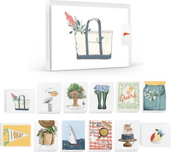 This 12-pack of assorted everyday greeting cards is elegantly illustrated by artist Ingrid Ramus, founder and owner of the Ramus & Co brand. Each card has unique artwork on the front and is blank inside. All greeting cards are made in the USA on heavyweight uncoated and locally-manufactured card stock. Each card is accompanied by a hand-embossed envelope made with heavyweight 95lb paper and a peel-and-stick flap - no licking envelopes here! Twelve white envelopes are included. All Ramus & Co. greeting cards are printed on FSC and SFI certified paper sourced from a regional mill that harnesses 66% of its energy from on-site sustainable sources, such as emission-free hydroelectricity and biomass co-generation from wood waste. All 12 greeting cards come packaged as a boxed set. Husband-and-wife team Calvin and Ingrid Ramus founded Ramus & Company in 2019, in New England, USA. Ingrid, the creative designer behind the brand, originates from Mexico, where she cultivated her skills in fashion and textile design. Drawing from her unique and inquisitive perspective on preppy style, Ingrid prolifically designs whimsical yet classic stationery and lifestyle items.