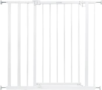 The Summer by Ingenuity Everywhere Extra Tall Walk-Thru Safety Gate is stylish and convenient, and its height gives it added security. This 36 tall baby and dog gate fits openings 28.75 to 39.75 wide and can be installed in doorways or hallways using the no-drill pressure mount system with adhesive wall cups. Hardware is included for a secure installation at the top of stairs. Its easy to operate this gate with one hand. The door stopper helps prevent the door from swinging outward over stairs. Package includes hardware installation kit. Recommended tools for installation: drill, Phillips-head screwdriver, pencil, measuring tape.