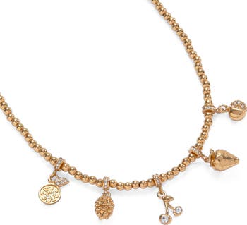 Fresh-picked and full of sparkle, the Summer Fruits Charm Necklace is pure sunshine for your stack. This beaded necklace features dimensional charms including a pomegranate, orange slice, raspberry, strawberry, and cherry, each accented with crystal details for an extra pop of fun. Finished with an adjustable extender for a just-right fit, it's a juicy way to sweeten up any look.