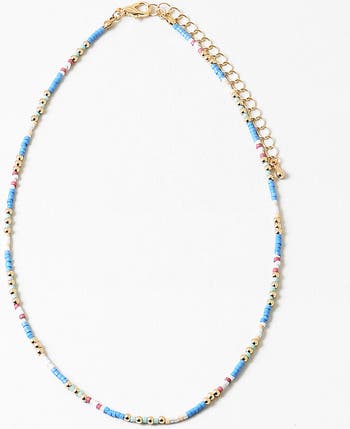 We love this shade of blue and the cool pattern with the gold beads. It's easy to dress up with your favorite sundress or dress down with a classic white t-shirt. Looking for cute layers? Try pairing it with the Tiny Beaded Rectangle Necklace.