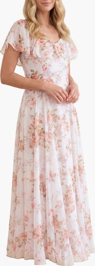 The Summer's Rose Georgette Ankle Gown. Adorned with the delicate Summer’s Rose floral print, this ankle-length gown evokes the warmth of fading summer light. Crafted in fluid georgette, the silhouette drapes effortlessly for graceful movement.