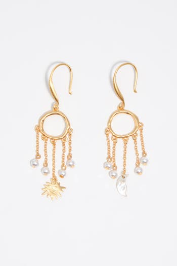 Metal earrings with engraved logo. Finished with a brushed gold metallic finish and hook clasp. Approx. 7.5 ��� 2 cm