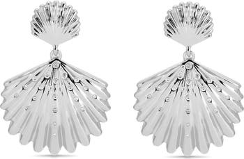 Dainty cubic zirconia catch the light on these beach-inspired shell drop earrings boasting a high-shine finish.