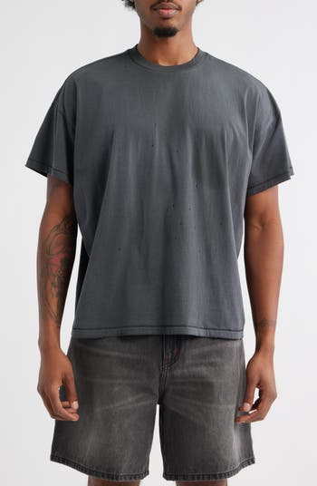 Made to look like a well-loved favorite, this street-savvy cotton T-shirt is washed for a sun-faded effect and sprinkled with dabs of destruction.