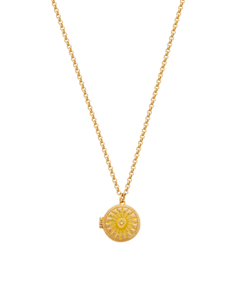 - Detail: Sun motif, hinged locket opens to hold a small keepsake