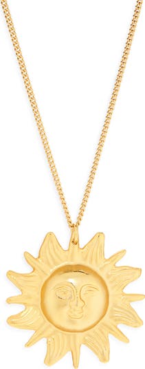 Add rich shine to your neckline with this glossy necklace showcasing a sun-shaped pendant meant to dazzle all day long.