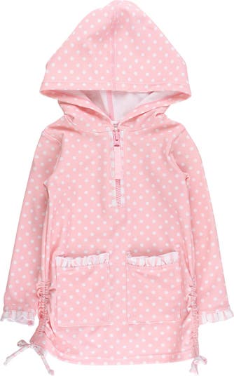 - Bow detail,Hood,Long sleeves for sun protection,Pockets,Quarter zipper,Ruffle detail