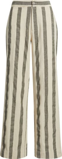A streamlined fit through the hips gives way to a trend-savvy wide-leg silhouette in these high-waist cotton-and-linen pants perfect for warm weather.