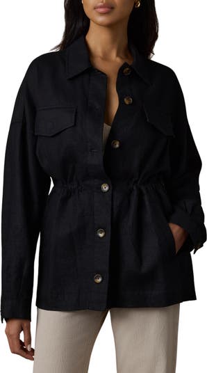 Cinching at the waist adds shape to this sturdy linen utility jacket popped with a plethora of workwear-inspired pockets.