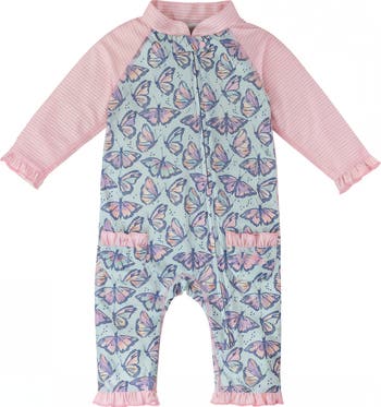 For a blend of adorable style and superior sun protection, our baby girl's swimsuit offers UPF 50+ coverage with buttery soft, quick-drying fabric, ensuring full protection for her arms and legs while keeping her comfortable and cute.