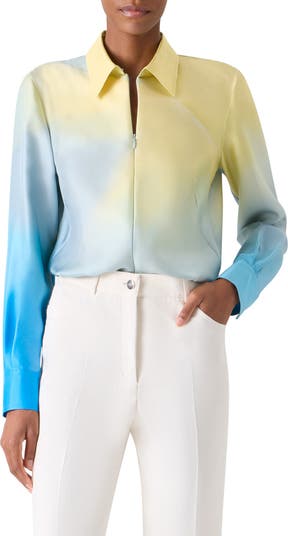 Albert Kriemler enters his blue period for fall '25, focusing his 'Blue Hour' around a pared-back palette that allows fabrics—like the lustrous silk twill of this zip-front top—to really shine.
