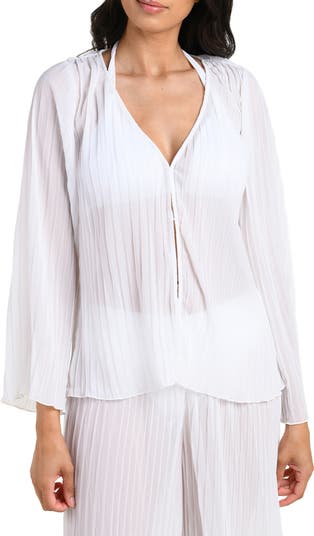 Accordion pleat crepe keeps you cool and comfortable as spend sunny days poolside in this sylish cover-up.