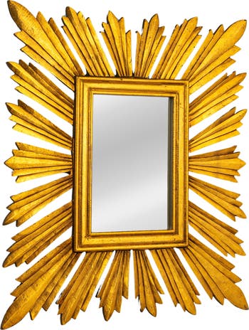Sunburst Rectangular Wall Mirror, Gold