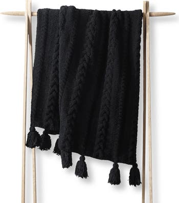 Braided detail adds texture to the soft, cozy fabric of this knit throw charmingly finished with playful pompoms