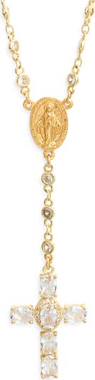 Handmade with sparkling cubic zirconia bezels, this rosary-inspired necklace will bring a divine glow to your ensemble.