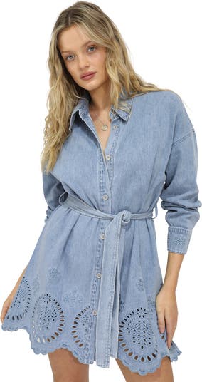 Sunday Somewhere Denim Broderie Mini Shirt Dress