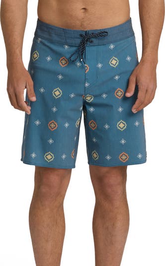 Stretchy, durable fabric made in part with recycled fibers keeps you riding high in board shorts designed with a secure back pocket for sun-and-sand essentials. They sit at the hips and hit just above the knees to protect your thighs in the water and give you total surfer cred on land.