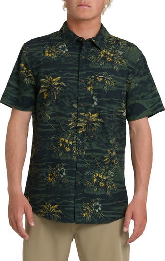 Tropical vignettes invite cooling breezes in a stretch-enhanced cotton shirt topped with a crisp collar to keep you looking sharp even when you don't have to. Wear it smooth, rumpled, tucked or untucked to change up your style without ever losing your comfort.