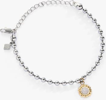 Brighten your day with the radiant beauty of this sunflower charm bracelet. Crafted with a ball chain design and an adjustable clasp closure, it’s designed for both ease and elegance. The sunflower charm, adorned with sparkling clear crystal, represents happiness, positivity, and the warmth of the sun. Whether you wear it as a reminder of joy or gift it to someone who brings light into your life, this bracelet is a cheerful and uplifting addition to any stack.