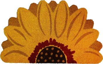 Brighten up your entryway with the 1'6" x 2'4" Sunflower Flower Shaped Coir Doormat, a vibrant and welcoming addition to any home. Designed in the shape of a sunflower, this unique doormat brings cheerful charm and seasonal warmth to your doorstep. Its floral-inspired design makes it perfect for spring, summer, and fall, complementing a variety of outdoor and indoor spaces. Made from durable natural coir fibers, this mat is crafted to trap dirt, mud, and debris, helping keep your floors clean. The textured surface provides effective scraping action, while the sturdy backing ensures stability in high-traffic areas. Designed for both indoor and outdoor use, it is ideal for front doors, patios, porches, decks, balconies, and mudrooms. The sunflower shape and bold colors create a standout accent that enhances farmhouse, rustic, or modern home décor. Whether used daily or as a seasonal piece, this doormat is built to withstand regular foot traffic while maintaining its vibrant look. A perfect housewarming or seasonal gift, this floral doormat adds beauty and functionality to any entryway.