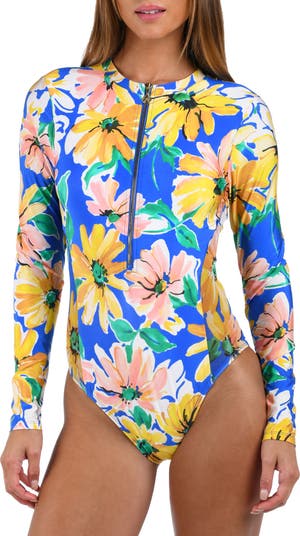 Sunflower Long Sleeve One-Piece Rashguard Swimsuit