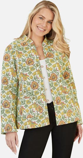 For bang on trend outerwear for the summer we love this yellow floral quilted jacket from Yumi. Made using a traditional quilting technique, from lightweight cotton, this reversible garment really is a show stopper. With a different unique print on the inside, the tags and care labels are sewn into the pockets so you can change your look easily. Pair with jeans and a T-shirt for an off duty look, or 2!