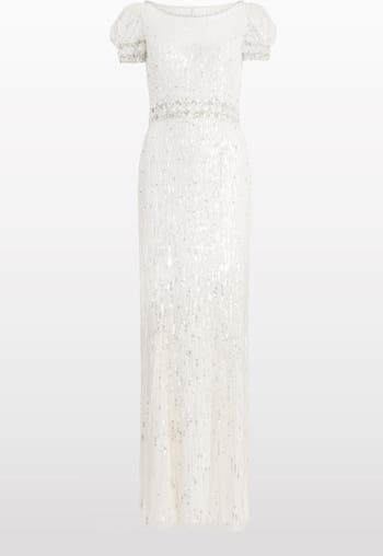 Romantic and refined, this designer bridal gown combines classic detailing with contemporary allure. The fitted silhouette is enhanced by soft short sleeves and an illusion neckline, creating balance and poise. Intricate embellishment throughout adds dimension and luminosity, drawing the eye to the elegant waistline. Graceful and timeless, it embodies the essence of modern bridal sophistication.