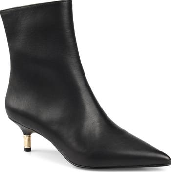 A metallic heel adds an extra flash of glamour to this pointy-toe bootie that's ready to elevate your everyday style.