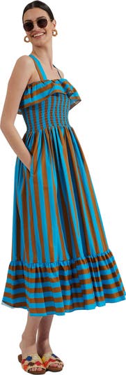 She may be called Sunkissed but we consider this the chef’s kiss of summer dresses. Cut from our breeziest Italian summer poplin, with a long, floaty skirt with bouncy ruffles at the bust and hem, she’s the perfect day dress for parading along the Ligurian promenade. As versatile as she is easy, the wide straps are adjustable and can be worn three different ways