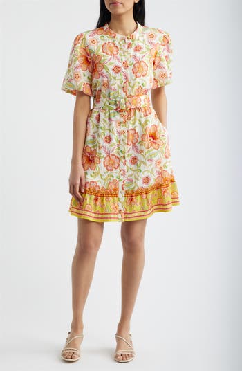 On-seam pockets detail the skirt of this puff-sleeve dress that's hugged by a matching belt.