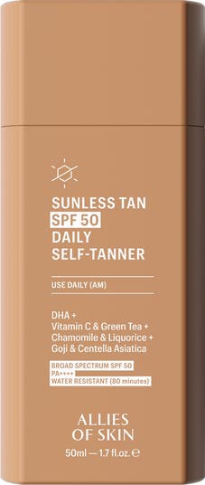 What it does: Supercharged with DHA, vitamin C and goji berry extract, alongside centella asiatica, green tea leaf, liquorice root and chamomile flower extract. Broad-Spectrum SPF 50, PA++++ protection helps shield skin from UV-induced skin damage and premature aging, while a buildable, gradual and natural-looking healthy glow and tan appears throughout the day.