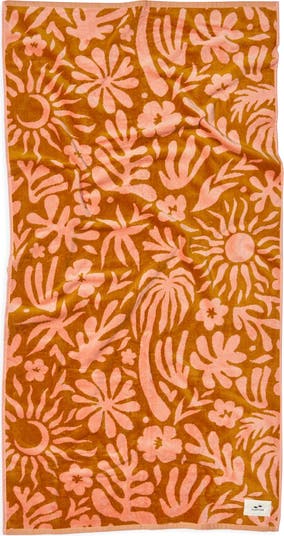 Claim your patch of sand with this generously sized beach towel made from a plush cotton velour that's thick, soft and highly absorbent. A reactive dye prevents the playful print from fading.